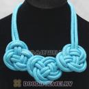 Handmade Weave Fluorescence Light Blue Cotton Rope 3 Flowers Necklace