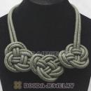 Handmade Weave Fluorescence Army green Cotton Rope 3 Flowers Necklace