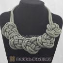 Handmade Weave Fluorescence Army green Cotton Rope 5 Flowers Necklace