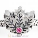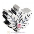 European Sterling Silver Maple Leaf Beads with Rose Austrian Crystal