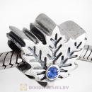 European Sterling Silver Maple Leaf Beads with Sapphire Austrian Crystal