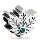 European Sterling Silver Maple Leaf Beads with Emerald Austrian Crystal