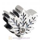 European Sterling Silver Maple Leaf Beads with Clear Austrian Crystal