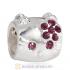 European Style Sterling Silver KT Cat Bead with Fuchsia Austrian Crystal