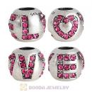 Sterling Silver Surrounded by Love with Rose Austrian Crystal Charm