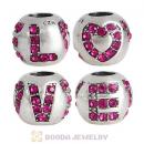 Sterling Silver Surrounded by Love with Fuchsia Austrian Crystal Charm