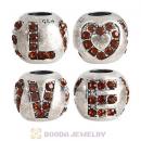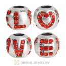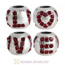 Sterling Silver Surrounded by Love with Light Siam Austrian Crystal Charm