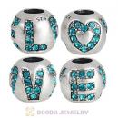 Sterling Silver Surrounded by Love with Aquamarine Austrian Crystal Charm