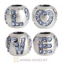 Sterling Silver Surrounded by Love with Light Sapphire Austrian Crystal Charm