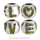 Sterling Silver Surrounded by Love with Olivine Austrian Crystal Charm