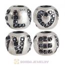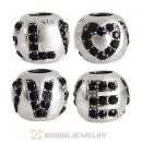 Sterling Silver Surrounded by Love with Jet Hematite Austrian Crystal Charm