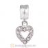 Sterling Silver Heart Dangle Charms with Topaz Austrian Crystal