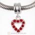 Sterling Silver Heart Dangle Charms with Siam Austrian Crystal