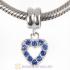 Sterling Silver Heart Dangle Charms with Blue Zircon Austrian Crystal