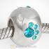 Sterling Silver European Heart Beads with Blue Zircon Austrian Crystal