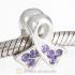 Sterling Silver Ribbon Lung Cancer Bead with Violet Austrian Crystal