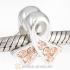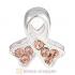 Sterling Silver Ribbon Lung Cancer Bead with Rose Austrian Crystal