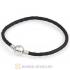 21cm Black Braided Leather Bracelet with Silver Round Clip fit European Beads