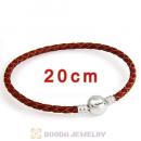 20cm Brown Braided Leather Bracelet with Silver Round Clip fit European Beads