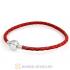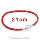 21cm Red Braided Leather Bracelet with Silver Round Clip fit European Beads