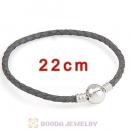 22cm Gray Braided Leather Bracelet with Silver Round Clip fit European Beads