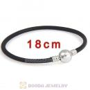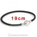 19cm Black Slippy Leather Bracelet with Silver Round Clip fit European Beads