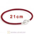 21cm Dark Red Slippy Leather Bracelet with Silver Round Clip fit European Beads