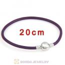 20cm Purple Slippy Leather Bracelet with Silver Round Clip fit European Beads