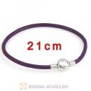 21cm Purple Slippy Leather Bracelet with Silver Round Clip fit European Beads