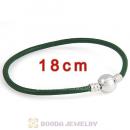 18cm Green Slippy Leather Bracelet with Silver Round Clip fit European Beads