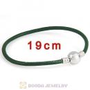 19cm Green Slippy Leather Bracelet with Silver Round Clip fit European Beads