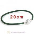 20cm Green Slippy Leather Bracelet with Silver Round Clip fit European Beads