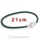 21cm Green Slippy Leather Bracelet with Silver Round Clip fit European Beads
