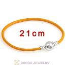 22cm Yellow Slippy Leather Bracelet with Silver Round Clip fit European Beads