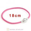 18cm Pink Slippy Leather Bracelet with Silver Round Clip fit European Beads