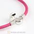 19cm Pink Slippy Leather Bracelet with Silver Round Clip fit European Beads