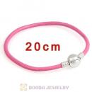20cm Pink Slippy Leather Bracelet with Silver Round Clip fit European Beads