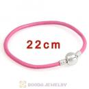 22cm Pink Slippy Leather Bracelet with Silver Round Clip fit European Beads