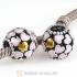 Sterling Silver Mystic Flower with Black and White Enamel Beads European Style