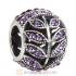 Sterling Silver Sparkling Leaves Bead with Violet Austrian Crystal