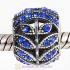Sterling Silver Sparkling Leaves Bead with Blue Zircon Austrian Crystal