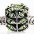 Sterling Silver Sparkling Leaves Bead with Emerald Austrian Crystal