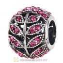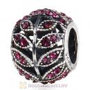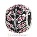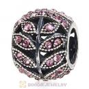 Sterling Silver Sparkling Leaves Bead with Rose Austrian Crystal
