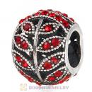 Sterling Silver Sparkling Leaves Bead with Light Siam Austrian Crystal