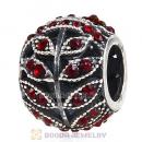 Sterling Silver Sparkling Leaves Bead with Siam Austrian Crystal