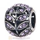 Sterling Silver Sparkling Leaves Bead with Light Amethyst Austrian Crystal