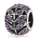 Sterling Silver Sparkling Leaves Bead with Violet Austrian Crystal