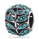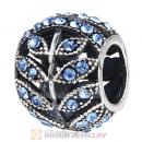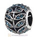 Sterling Silver Sparkling Leaves Bead with Blue Zircon Austrian Crystal