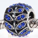 Sterling Silver Sparkling Leaves Bead with Sapphire Austrian Crystal