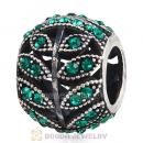 Sterling Silver Sparkling Leaves Bead with Emerald Austrian Crystal